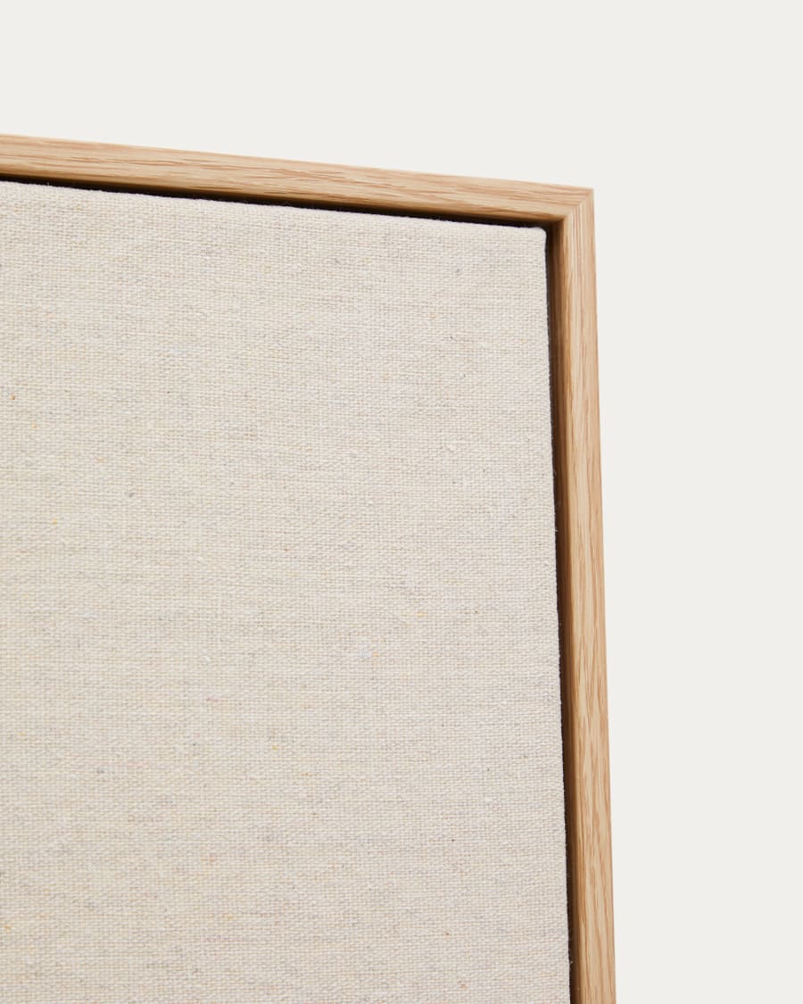 This Japandi abstract painting brings a harmonious blend of minimalist design and artistic sophistication to your interior. The canvas showcases a serene composition with neutral beige tones and a delicate golden ochre accent, creating a visual balance that embodies the essence of Japandi aesthetics. Housed within a natural wooden frame, this piece adds warmth whilst maintaining the understated elegance that defines contemporary living spaces.