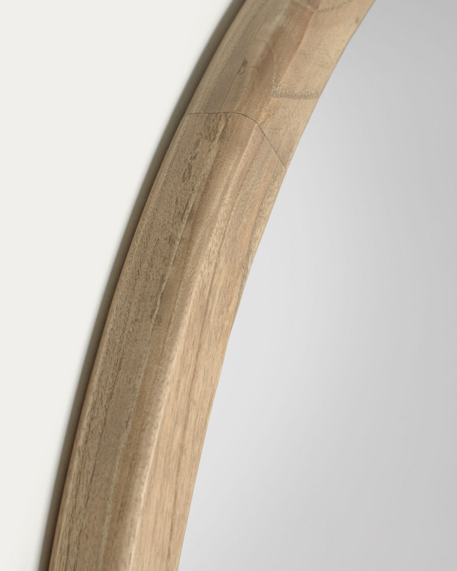 This round Japandi mirror captures the essence of minimalist elegance through its natural wood frame. The light-toned timber showcases organic grain variations that make each piece genuinely distinctive. Its clean circular silhouette and understated design bring a sense of calm sophistication to your interior, whilst the polished mirror surface delivers crystal-clear reflections that enhance your daily rituals with beauty and purpose.